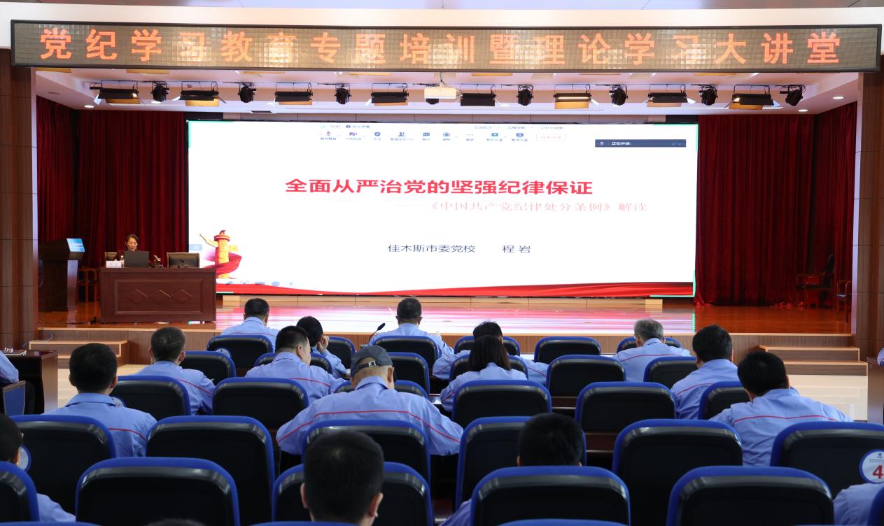 為深入學(xué)習(xí)貫徹習(xí)近平總書記關(guān)于開展黨紀(jì)學(xué)習(xí)教育的重要講話和重要指示精神,認(rèn)真學(xué)習(xí)貫徹《中國(guó)共產(chǎn)黨紀(jì)律處分條例》,按照公司黨委工作安排,5月27日,哈電集團(tuán)佳木斯電機(jī)股份有限公司(以下簡(jiǎn)稱“佳電股份”)開展黨紀(jì)學(xué)習(xí)教育專題培訓(xùn)暨理論學(xué)習(xí)大講堂,邀請(qǐng)佳木斯市委黨校教授程巖以《全面從嚴(yán)治黨的堅(jiān)強(qiáng)紀(jì)律保證》為題作專題培訓(xùn),佳電股份400余名黨員通過現(xiàn)場(chǎng)或視頻會(huì)議方式參加培訓(xùn)。