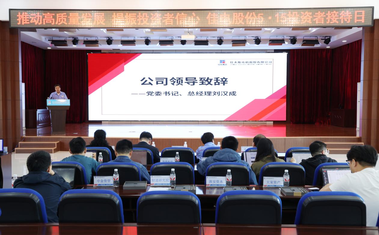 為全面貫徹落實黨的二十大精神,落實中央金融工作會議和新“國九條”相關(guān)部署,積極推進(jìn)上市公司投資者保護(hù)宣傳工作,根據(jù)黑龍江省證監(jiān)局《關(guān)于開展2024年“5?15全國投資者保護(hù)宣傳日”活動的通知》要求,5月15日,哈電集團(tuán)佳木斯電機股份有限公司(以下簡稱“佳電股份”)組織開展了以“向‘新’轉(zhuǎn)變 向‘質(zhì)’而行”為主題的投資者接待日活動,方正證券、中信證券、華安基金、宏道投資等近30余家機構(gòu)投資者走進(jìn)公司進(jìn)行交流互動。佳電股份黨委書記、總經(jīng)理劉漢成出席會議并致辭,佳電股份總會計師韓思蒂、副總經(jīng)理鄭偉、動裝公司黨委委員賈允參加活動并圍繞主要產(chǎn)品、未來發(fā)展等方面內(nèi)容與投資者進(jìn)行了深入交流,佳電股份董事會秘書王紅霞主持會議。