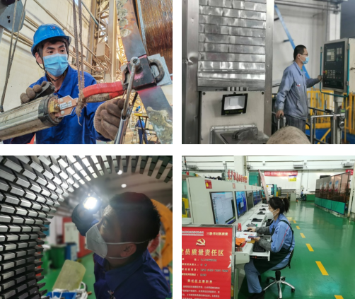 大型車間裝配工周長君帶領3名職工,拼搶十幾臺急要電機,幾乎每天不到7點開始工作,一直到晚上9點多才結束;任振亮是哈電集團青年崗位能手,也是大型車間的“拼命三郎”,每天最先開設備、最后關設備,工作時意外被鐵屑傷了眼睛,但他強忍疼痛,不到兩周時間相繼完成6臺同步機機座、7根同步機軸、31臺異步機機座相關工序的加工任務;趙輝是大型車間吊車工兼組長、預備黨員,返廠后,一人操作兩棟廠房的5臺吊車,每天工作十幾個小時,同時肩負起了消殺、發(fā)飯、疫情統(tǒng)計、內外溝通等工作。一天下來,頻繁上下梯臺累得她雙腿發(fā)軟,可她時刻按照黨員的標準嚴格要求自己,沒有一句怨言。