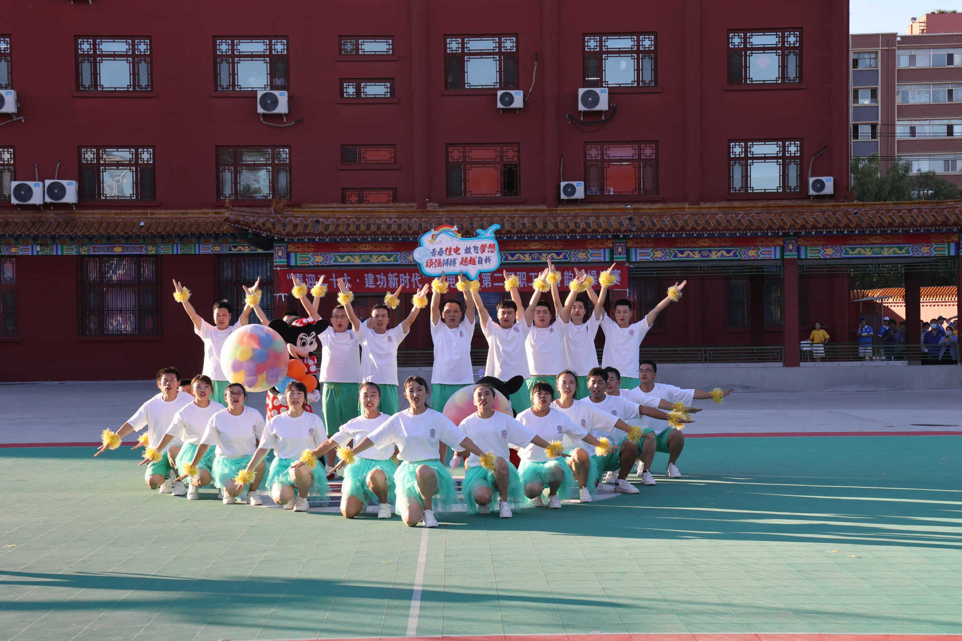 比賽現(xiàn)場氣氛熱烈歡快,參賽隊(duì)員個(gè)個(gè)精神飽滿。明快亮麗的服飾、歡樂躍動(dòng)的音樂、整齊劃一的動(dòng)作、舒展嫻熟的舞姿、熱情洋溢的笑容不斷呈現(xiàn)在觀眾面前。各參賽隊(duì)伍的表演通過別出心裁的編排和創(chuàng)意,在舞臺(tái)上展示著他們的自信與活力,為現(xiàn)場觀眾們奉獻(xiàn)了一場又一場風(fēng)格各異、充滿活力的視覺盛宴,同時(shí),展現(xiàn)了同心而動(dòng)的團(tuán)隊(duì)意識(shí)和昂揚(yáng)向上的進(jìn)取精神,贏得現(xiàn)場觀眾陣陣掌聲和喝彩聲。