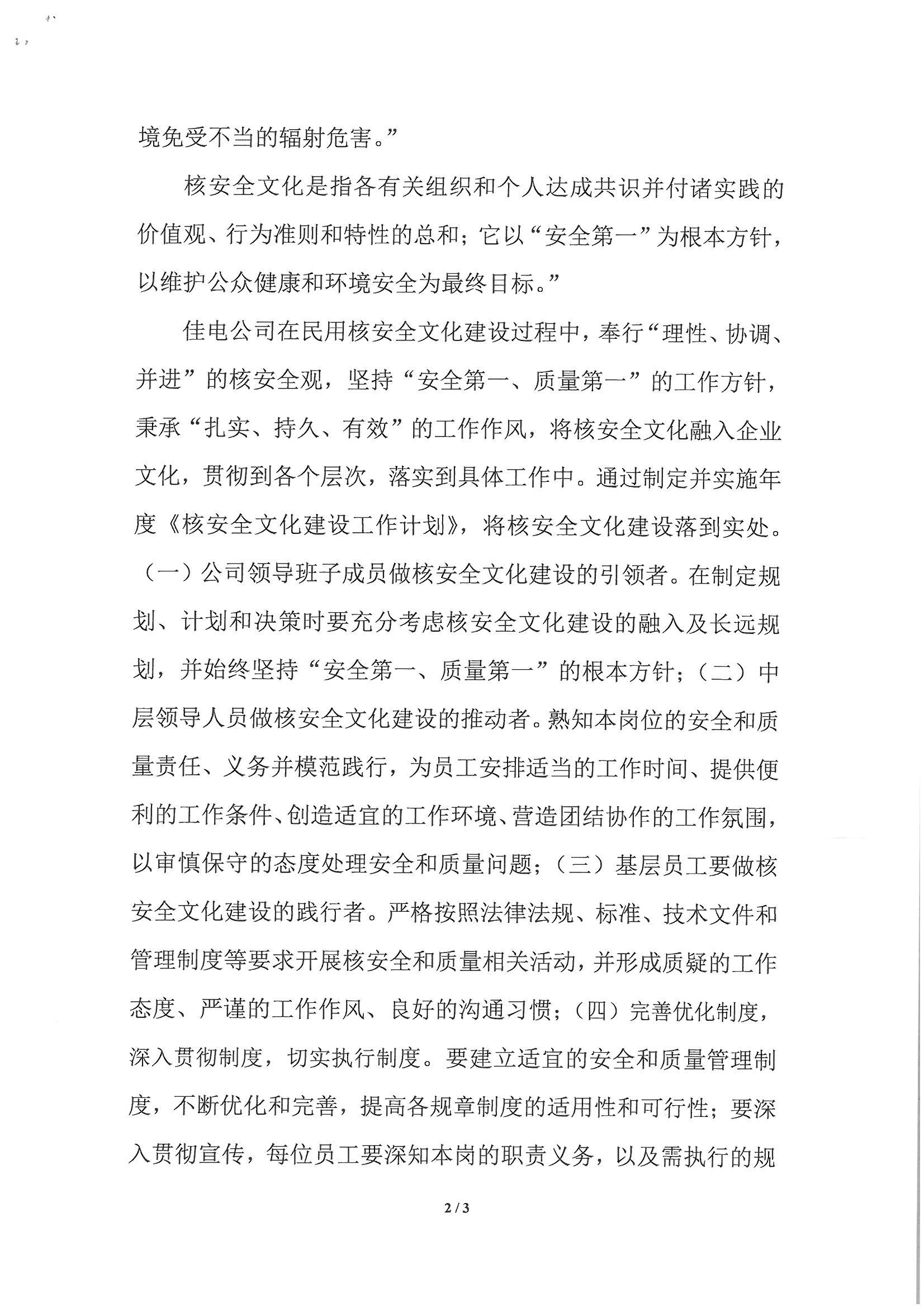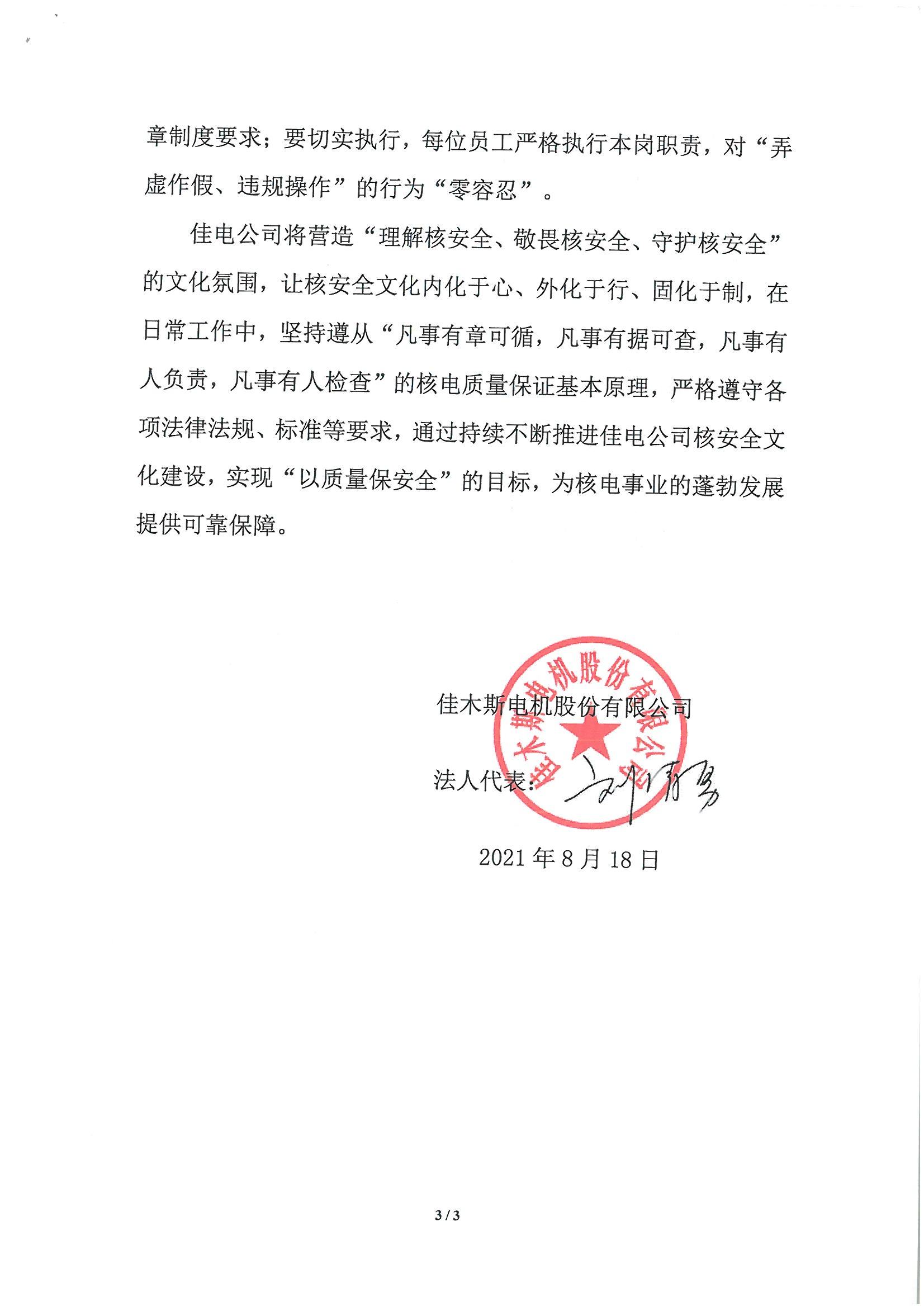 《佳木斯電機(jī)股份有限公司核安全文化政策聲明》