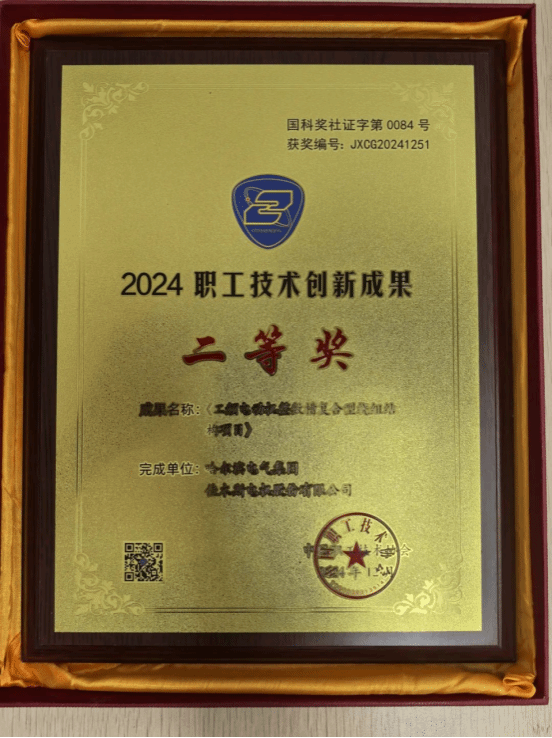 近日,在全國職工技術(shù)創(chuàng)新成果評選活動中,哈電集團佳木斯電機股份有限公司申報的《工頻電動機整數(shù)槽復(fù)合型繞組結(jié)構(gòu)項目》,憑借卓越的創(chuàng)新實用性,在眾多項目中脫穎而出,榮獲“2024年全國職工技術(shù)創(chuàng)新成果二等獎”。