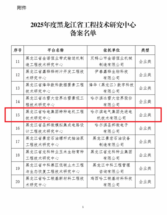 近日,黑龍江省科學(xué)技術(shù)廳發(fā)布了《關(guān)于2025年度黑龍江省工程技術(shù)研究中心擬備案名單的公示》。經(jīng)單位申報(bào)、市地推薦、專家評(píng)審等程序,哈電集團(tuán)佳電股份全資子公司先進(jìn)電機(jī)技術(shù)有限公司(以下簡(jiǎn)稱“先進(jìn)電機(jī)公司”)申報(bào)的“黑龍江省哈電集團(tuán)特種電機(jī)工程技術(shù)研究中心”成功進(jìn)入2025年度黑龍江省工程技術(shù)研究中心備案名單,這一成果不僅標(biāo)志著先進(jìn)電機(jī)公司在構(gòu)建高層次研發(fā)平臺(tái)、深化產(chǎn)學(xué)研合作領(lǐng)域?qū)崿F(xiàn)新突破,更體現(xiàn)了黑龍江省對(duì)佳電股份在特種電機(jī)領(lǐng)域長(zhǎng)期投入、技術(shù)積淀及工程化能力的權(quán)威認(rèn)可與高度肯定。